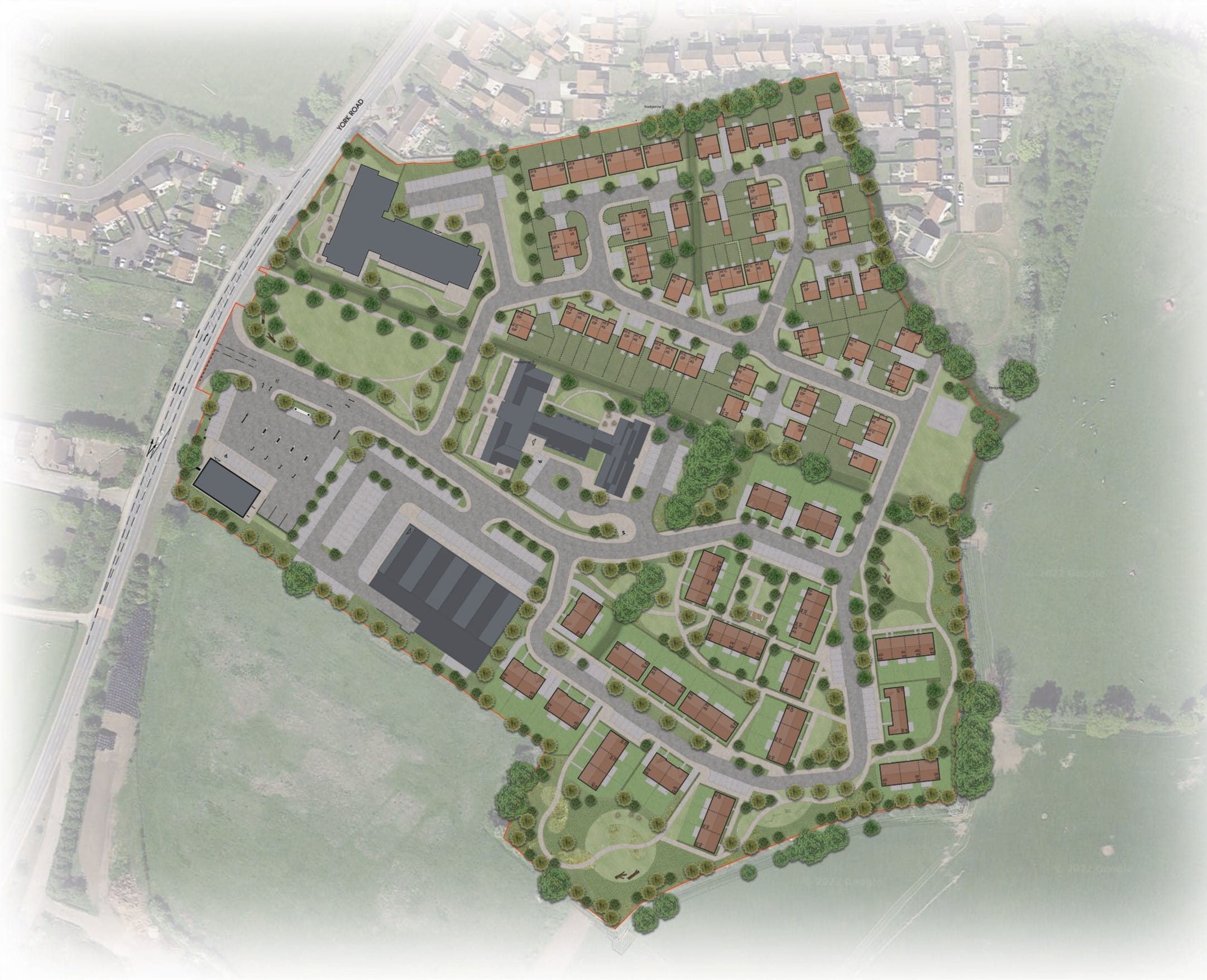 As you might be aware, outline planning permission was granted on 13 December 2023 for a mixed use development comprising a food store, petrol filing station, 45no. senior living apartments, 51no. senior living bungalows, 60-bed care home, 70 no. dwellings (extant), medical facilities, and the creation of green walking routes, public open space and local areas of play.